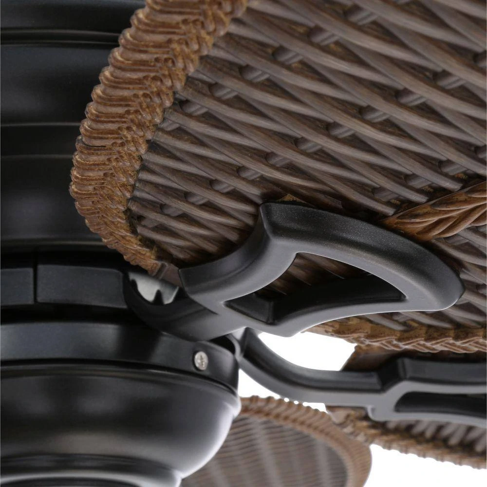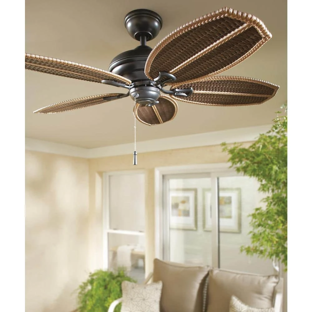 Designed especially for patios, verandahs and gazebos, the Hampton Bay Palm Beach II Outdoor Natural Iron Ceiling Fan is durable enough to withstand nature’s elements so you can relax anywhere in your home. Multi-tone brown wicker-patterned ABS blades in a natural iron finish provide optimal airflow. Patented Accu-Arm Technology allows for easy installation and quiet, wobble-free operation.