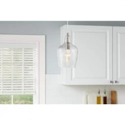 Gillian 1-Light Brushed Nickel Cone Mini Pendant with Clear Hammered Glass by Hampton Bay