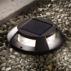 Solar Gray Outdoor Integrated LED Landscape Ground Path Disk Lights 8 Lumens (4-Pack) by Hampton Bay