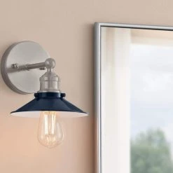 Glenhurst 1-Light Cobalt and Brushed Nickel Indoor Industrial Farmhouse Wall Sconce Light Fixture with Metal Shade by Hampton Bay