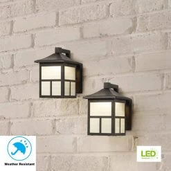 1-Light Black Outdoor Wall Lantern Sconce with Seeded Glass (2-Pack) by Hampton Bay