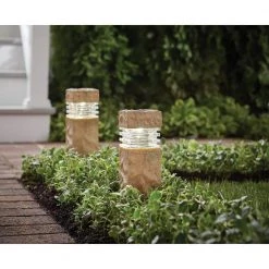 Solar Sand Stone Outdoor Integrated LED Landscape Rock Pillar Path Light (2-Pack) by Hampton Bay