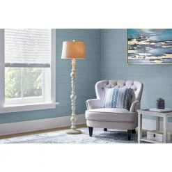 Witherby 61 in. Shabby White Floor Lamp with Gray Lamp Shade by Hampton Bay