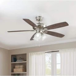 Holly Springs Low Profile 52 in. LED Indoor Brushed Nickel Ceiling Fan with Light Kit by Hampton Bay