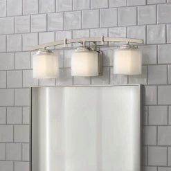 Architecture 3-Light Brushed Nickel Vanity Light with Etched White Glass Shades by Hampton Bay