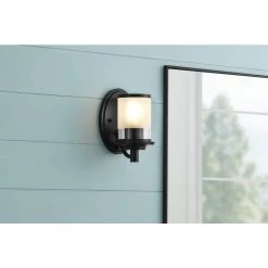 Cade 2-Light Brushed Nickel Bathroom Vanity Light Fixture with Frosted Glass Shades by Hampton Bay