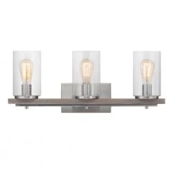 Boswell Quarter 8 in. 3-Light Brushed Nickel Vanity Light with Weathered Wood Accents by Hampton Bay
