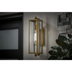 19.75 in. Black 1-Light Outdoor Wall Lamp with Clear Beveled Glass Shade by Hampton Bay