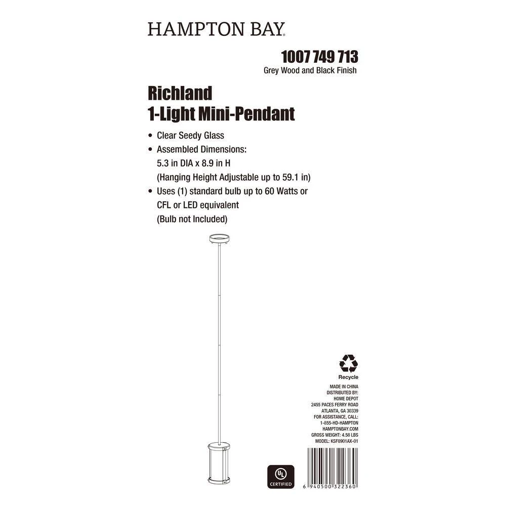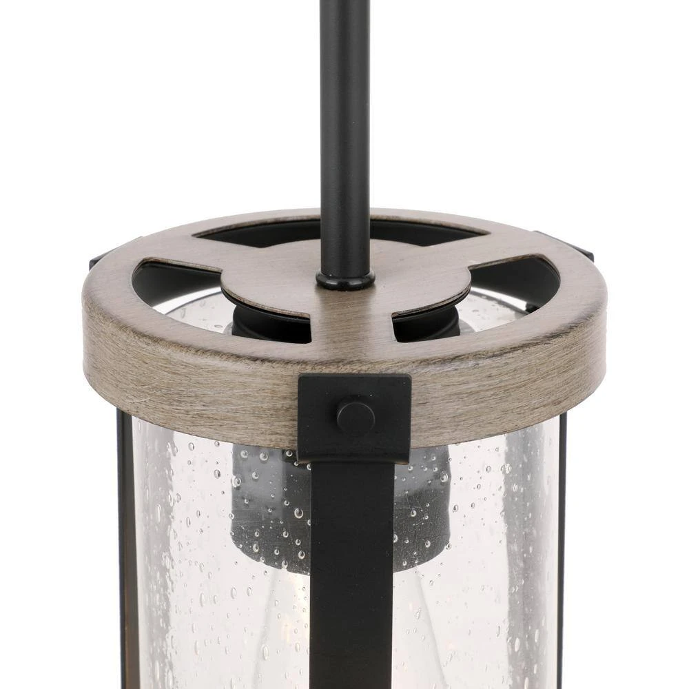 Create chic rustic Farmhouse style lighting for your home with this 1-light mini-pendant. Exposed bulbs protected by clear seeded glass radiate beautiful ambiance. With weathered gray wood finish and black accents, this style will compliment almost any decor.