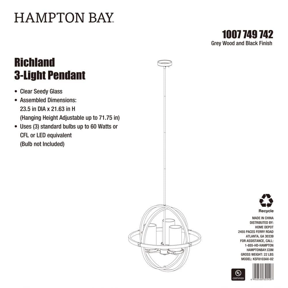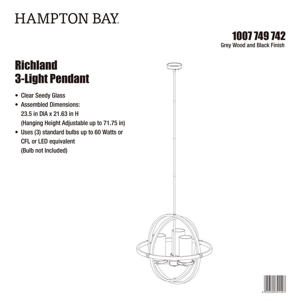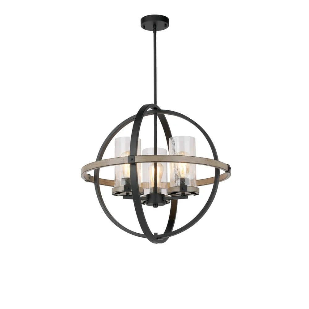 Create chic rustic Farmhouse style lighting for your home with this 3-light Orb pendant. Exposed bulbs protected by clear seeded glass radiate beautiful ambiance. With weathered gray wood finish and black accents, this style will compliment almost any decor.