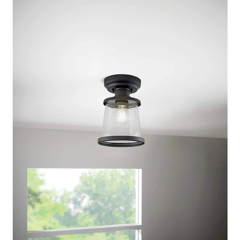 The Rigby Lighting Collection by Hampton Bay offers gorgeous lights for every room of your home. With clear glass, standout top and bottom trims as well as a rustic design, each piece of this collection makes your space feel like a warm, inviting room while showcasing your impeccable style. The 1-Light Flush Mount is the ideal size to hang in your entryway, bedroom, living room, or kitchen to infuse your space with a trendy vintage rustic feel. Also, with different sizes and finishes you can have a completely cohesive look throughout your entire home!