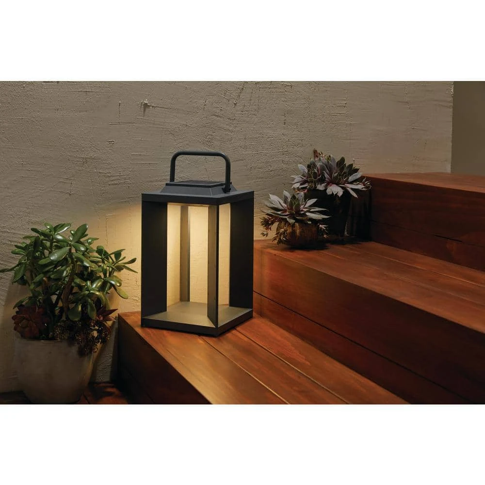 This Hampton Bay Modern Solar Lantern is made of durable UV protected plastic and painted metal handle. The total height is 11.75 in. It can be hung in patio or garden and also can be placed on table, flower beds or anywhere flat surface outdoor. It included a solar LED light on top that provides ambient lighting that suitable for everyday decor. There are 2 AA replaceable, rechargeable Ni-Mh batteries preinstalled. Before using, do not forget to switch it on by pulling the top light out and the switch is underneath.