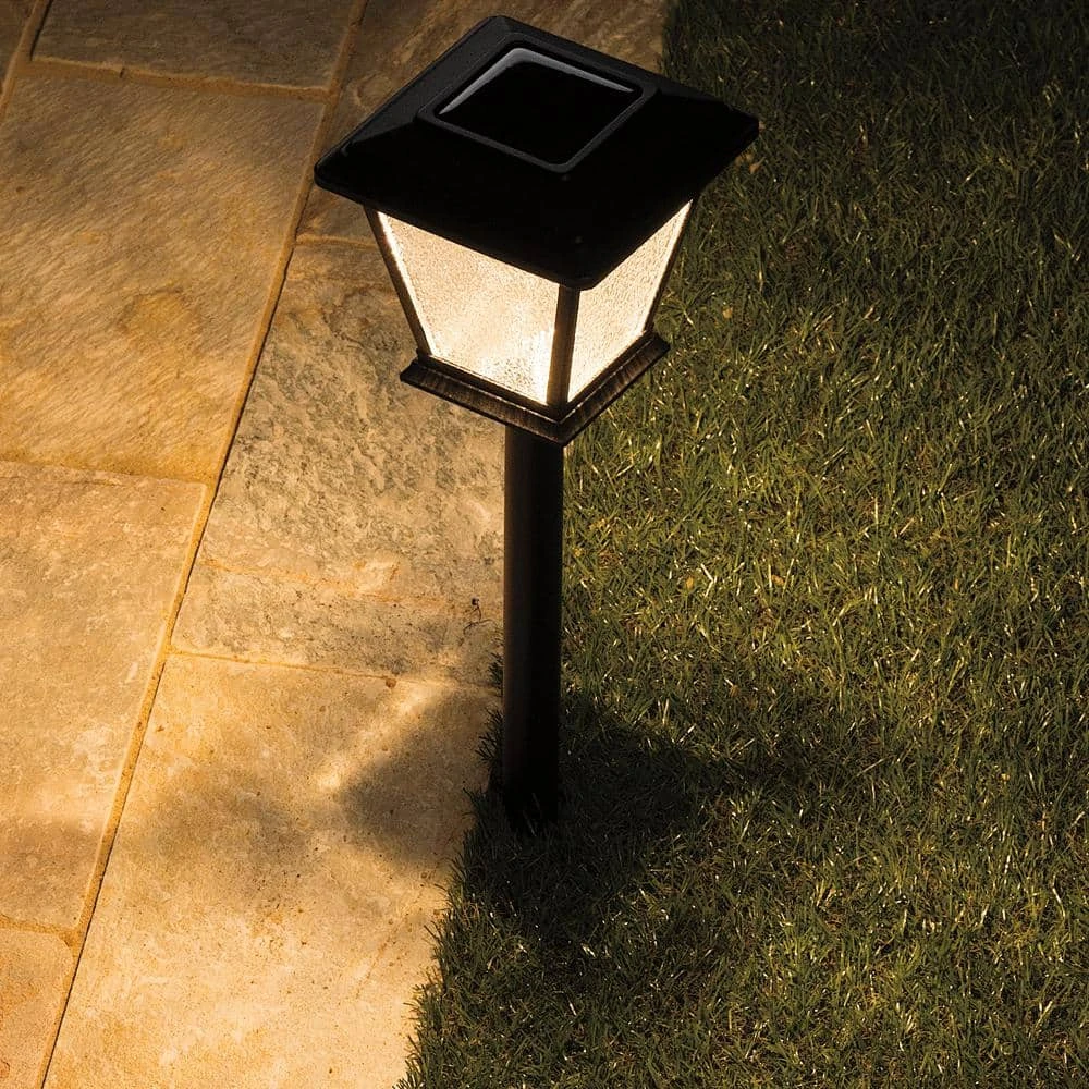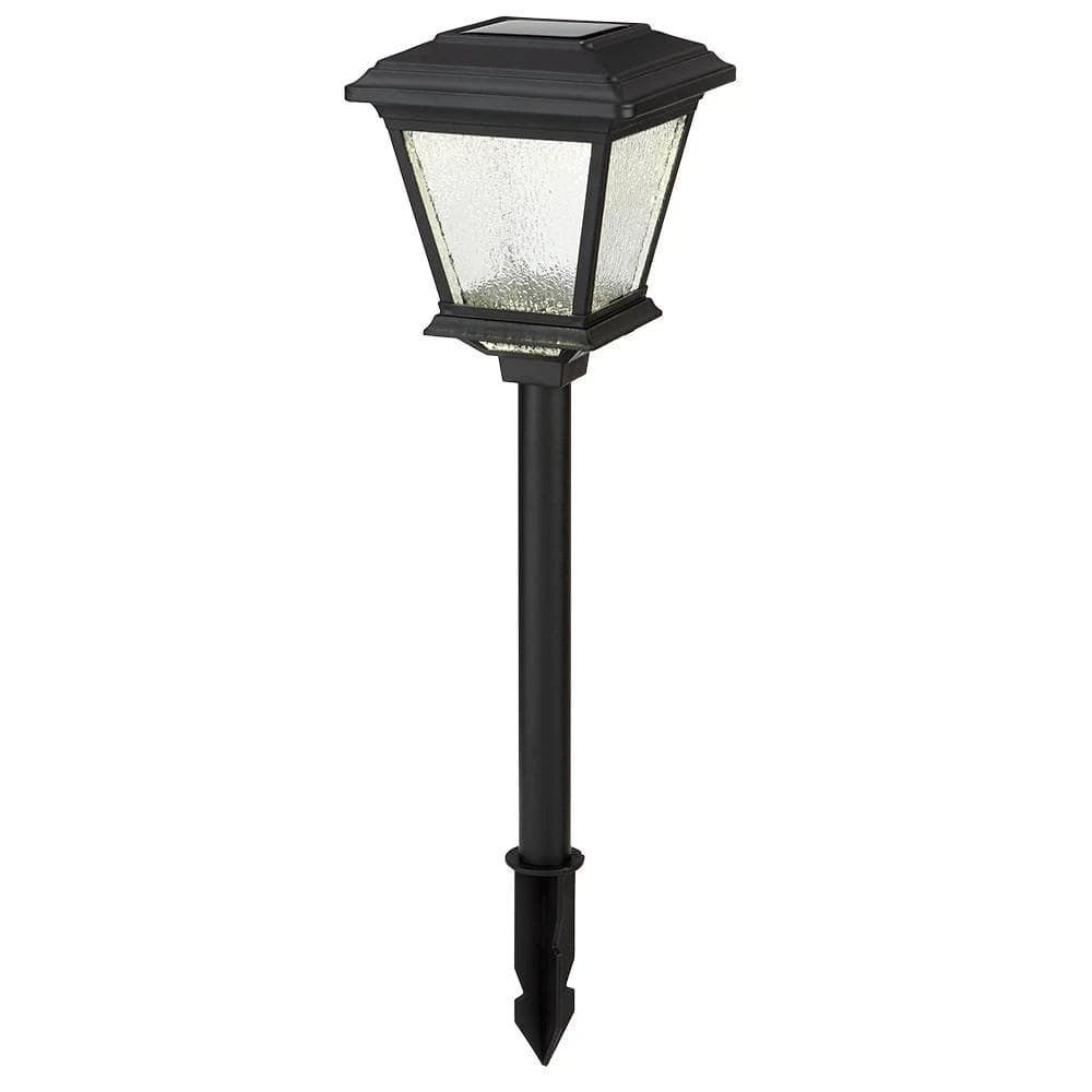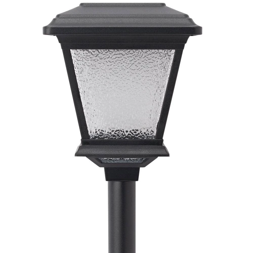 The Hampton Bay Solar Pathway Light 6-pack is an easy way to enhance your outdoor areas. Each pathway light produces a bright 15-Lumen light output to illuminate pathways, walkways, and garden areas. Installation is quick and easy with no wiring necessary and the lights include integrated LED bulbs so they are virtually maintenance-free. The matte black finish is designed to blend with outdoor landscapes and the textured glass produces a beautiful light pattern.