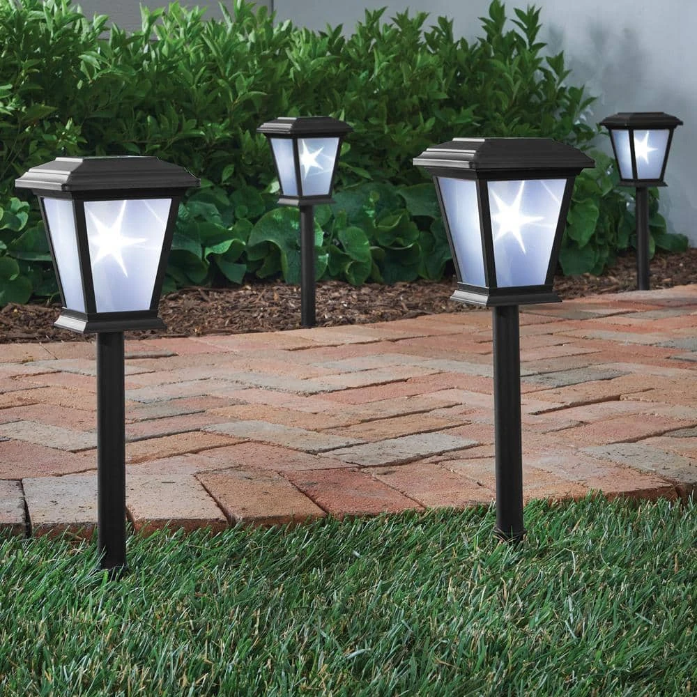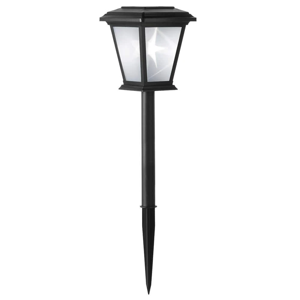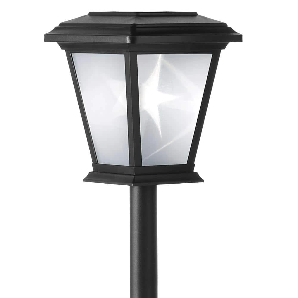 Add a unique look to your pathways with the 3D Star LED path lights from Hampton Bay. These lights are made to last with a powder coated matte black finish and frosted glass lens. The lights are constructed of an aluminum top and post to withstand the outdoor elements and the integrated LED makes the lights virtually maintenance-free with no bulbs to replace. Installation is quick and easy with no wiring necessary so you can spend less time working on projects and more time enjoying your outdoor space. This integrated LED light produces 15 Lumens.