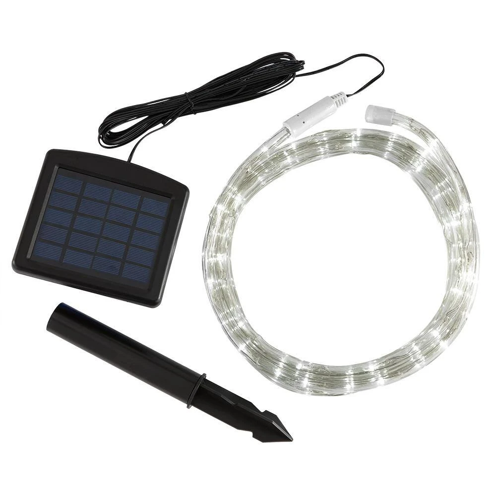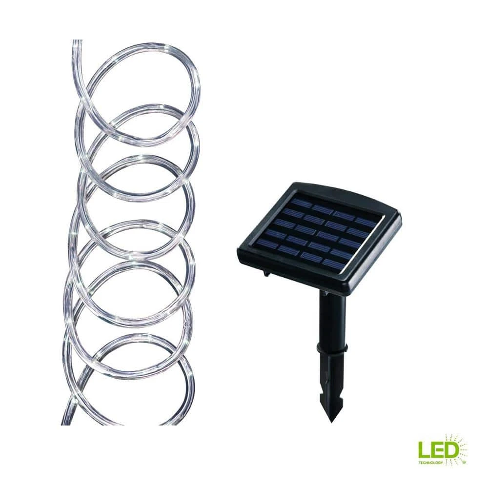 Add a lighting accent to your deck or trees with the Hampton Bay Solar LED Rope Light. Constructed of heavy duty clear PVC, the solar LED rope-light is made to withstand the elements while functioning automatically from dusk to dawn. The flexible solar LED rope-light is 16 ft. L and can be mounted to a deck, wrapped around a tree, or installed in a variety of ways to create unique looks for your outdoor landscape project. The Solar Rope-light and remote solar panel included are guaranteed not to rust and comes with a 2-year warranty. This integrated LED light produces 30 Lumens.