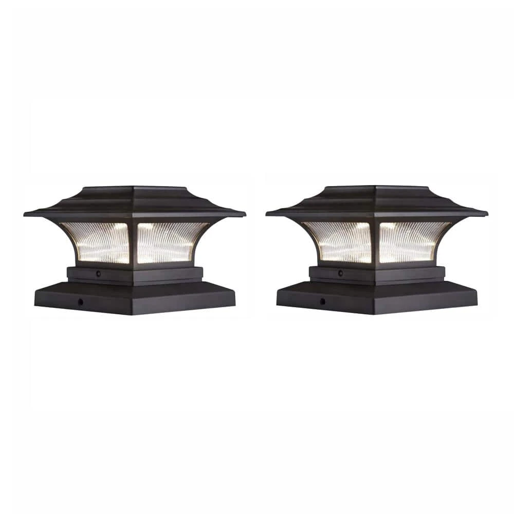 The 2-pack Hampton Bay Solar LED Post Caps creates bright 3000K warm white lighting that is perfect for illuminating exterior deck rails or fence lines. At 10 Lumens, you’ll enjoy 8 hours of uninterrupted illumination. The bronzes finish is applied to weather resistant polymeric materials for years of maintenance-free operation (no bulbs to replace!). Included with your LED deck light are all necessary hardware and battery(s).