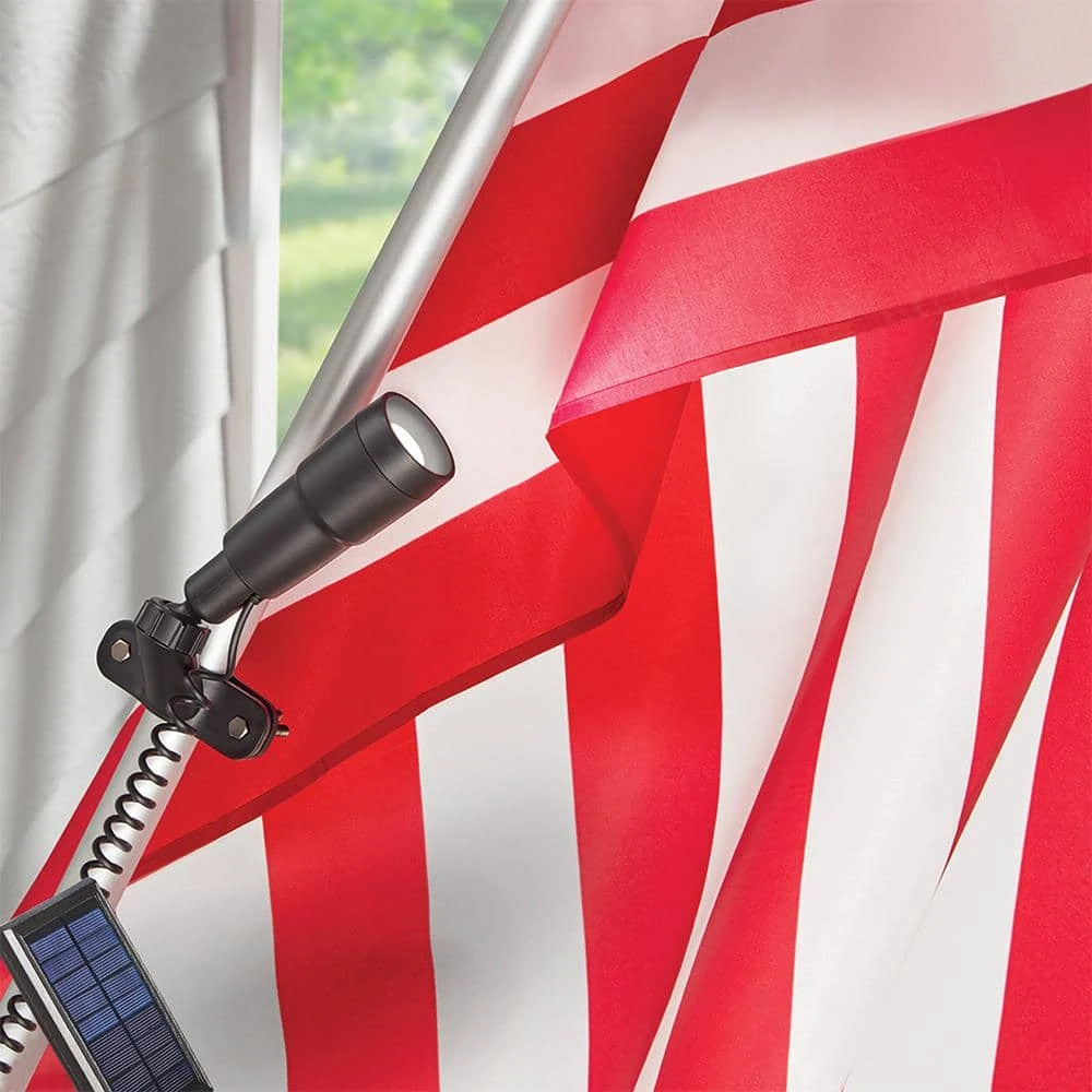 Shine a light on your waving symbol of freedom with the Hampton Bay solar LED flag light. This versatile system can be mounted on a wall or directly on a flag pole. The solar LED flag light contains an adjustable light head, adjustable solar panel, and mounting hardware so it can be mounted and adjusted as needed to illuminate your flag. The light operates automatically from dusk to dawn and is virtually maintenance free once installed. The solar LED flag light comes with a 2-year warranty and is guaranteed not to rust. This integrated LED light produces 50 Lumens.