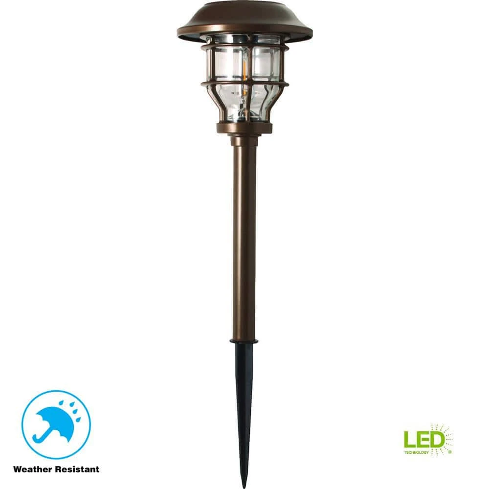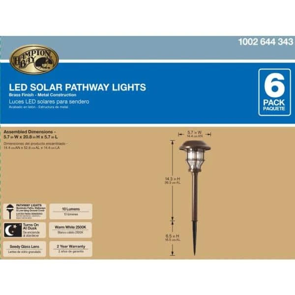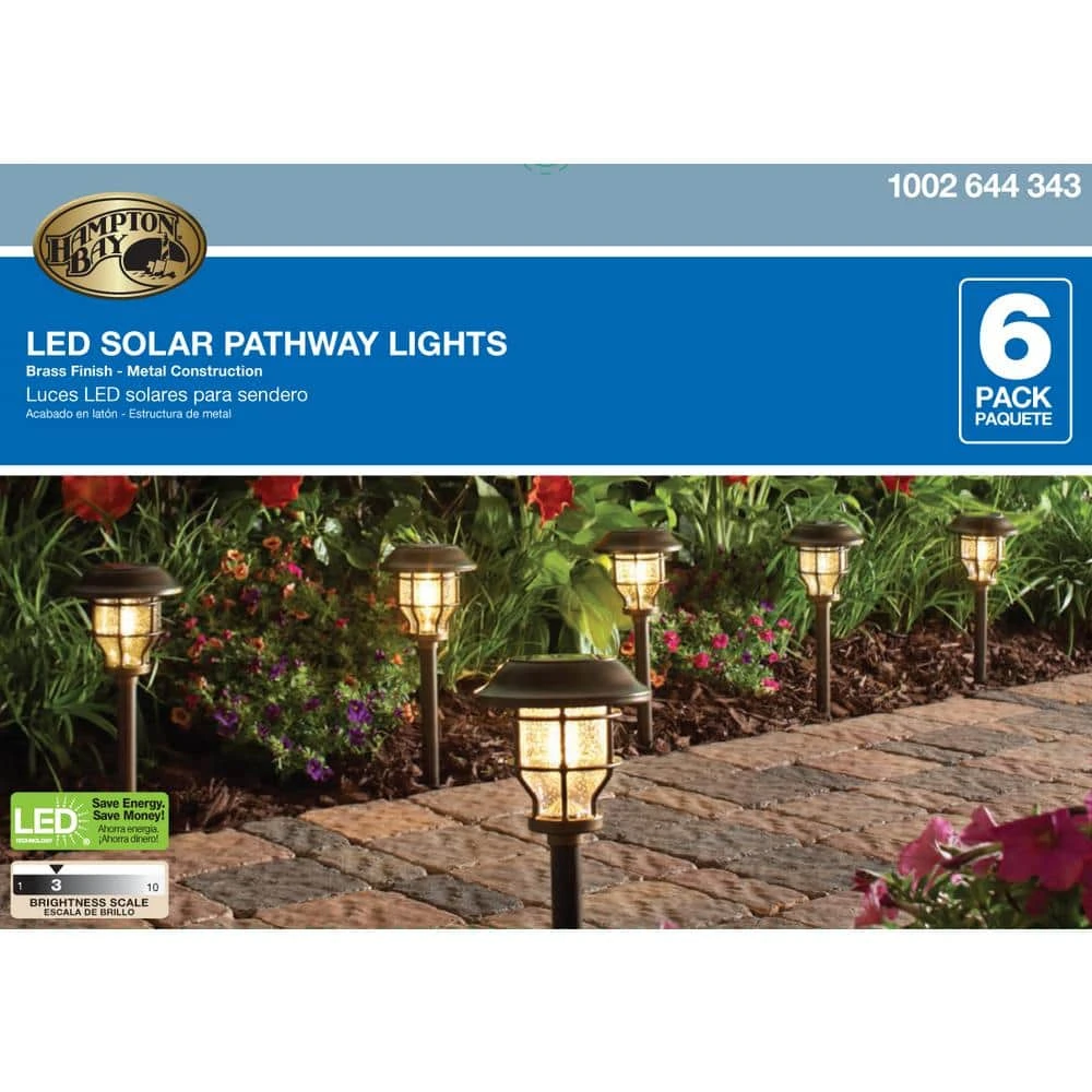 These Bronze Solar LED Pathway Outdoor Lights feature elegant seedy-patterned glass lenses with a vintage bulb for a beautiful lighting effect on your walkway. The perfect way to enhance your home’s landscape, this 6-pack set of outdoor lights adds charm and elegance while increasing safety in evening settings. Solar-powered means you can use them anywhere the sun shines. With no wiring necessary and LED bulbs, these solar path lights are easily installed and are practically maintenance free.