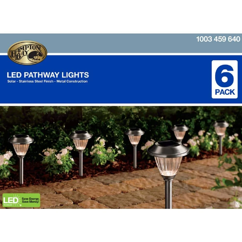 These Stainless Steel Solar LED Pathway Outdoor Lights feature elegant ribbed lenses for a beautiful lighting effect on your walkway. The perfect way to enhance your home’s landscape, this 6-pack set of square lights adds charm and elegance while increasing safety during nighttime hours. Solar-powered means you can use them anywhere the sun shines. With no wiring necessary and LED bulbs, these solar path lights are easily installed and are practically maintenance free.