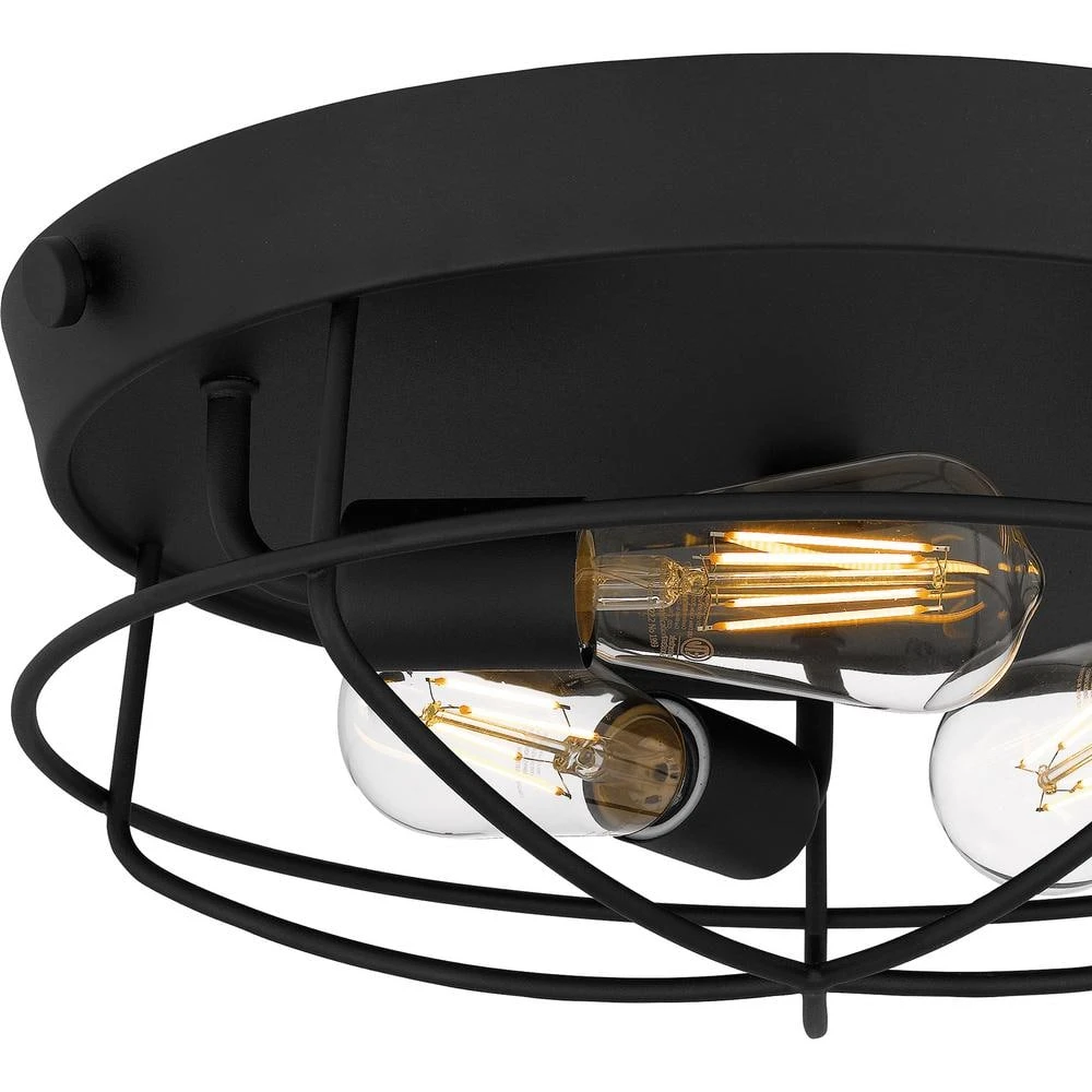 Designed from the inspiration of a vintage element, this wire-caged flush mount adds a modern rustic farmhouse spin to your home. This industrial-inspired fixture features a matte black finish with a steel construction cage shade. Ideal for bedrooms, kitchens, and hallways.