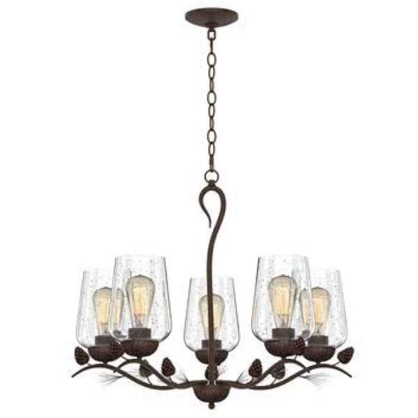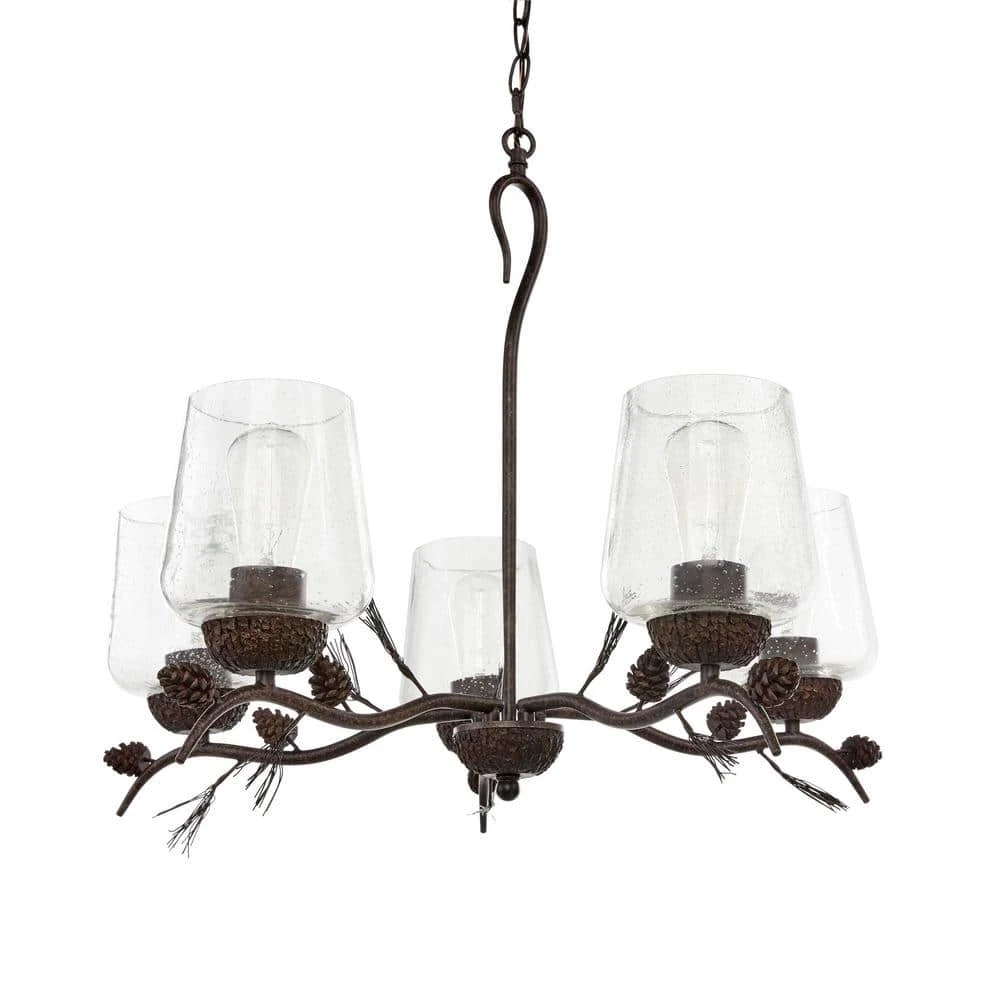Bring a stylish, bright glow to your home with the 5-Light handmade finish chandelier with clear seeded glass shades add eye-catching beauty. Easy to install and maintain, pair in multiples for a polished look you will enjoy year after year. This durable fixture uses 5 in. x 60-Watt bulb, which is not included.