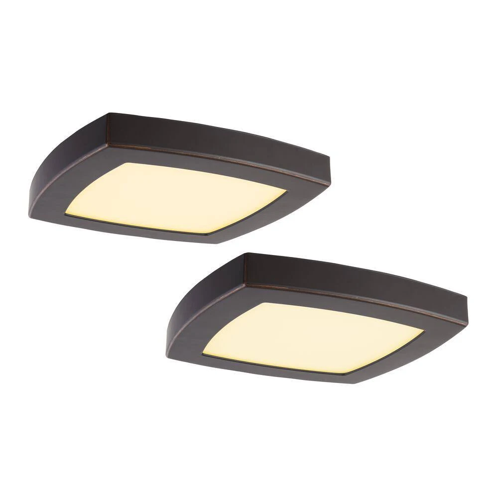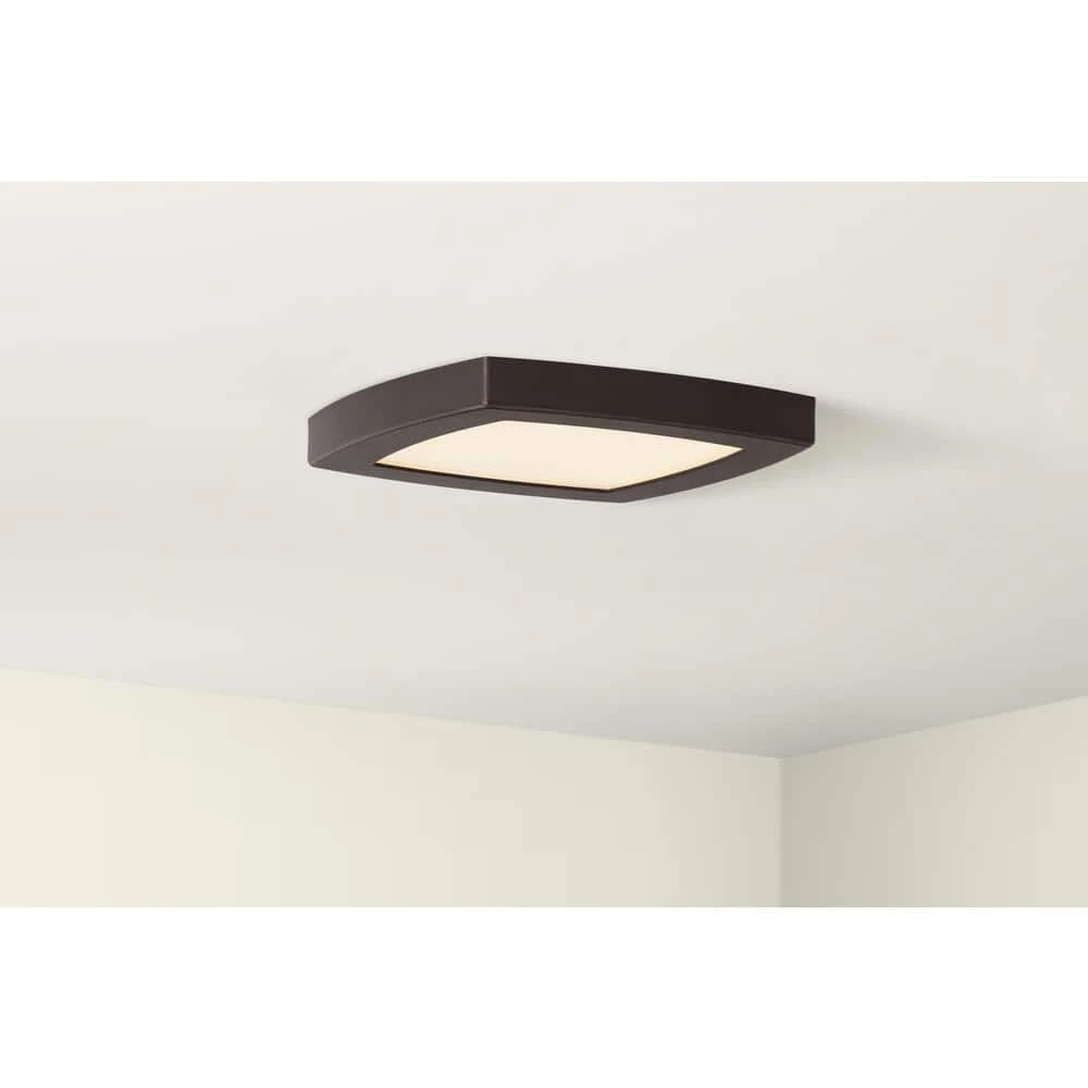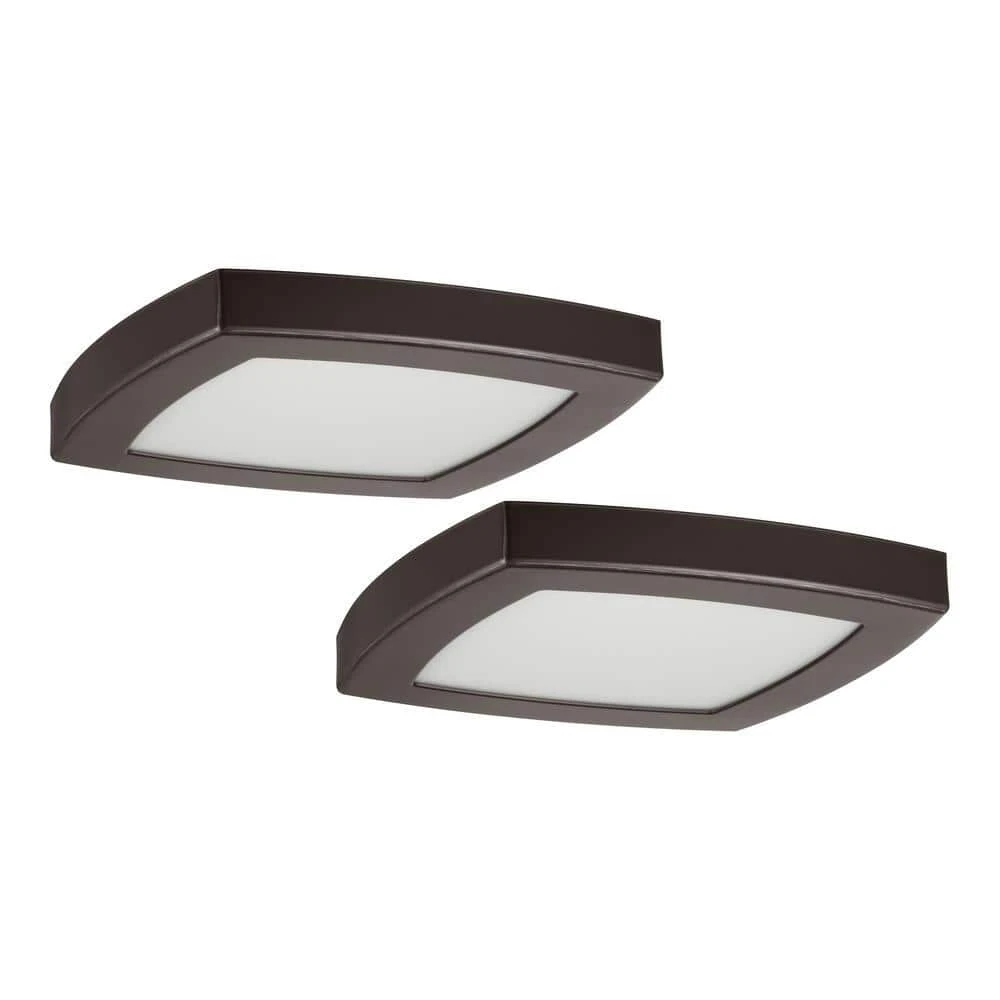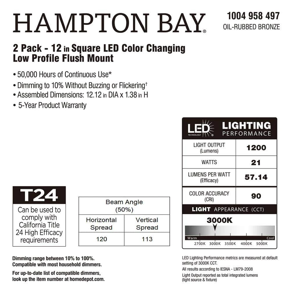 Upgrade the lighting in your home with these Hampton Bay Square Flush Mount light fixtures. The oil-rubbed bronze finish, low profile and industrial design make these a perfect choice for your office or living room. The low-maintenance LED provides 120W of light while using 20% less energy than incandescent lighting. The light temperature is customizable so you’ll always have the right atmosphere for your space.