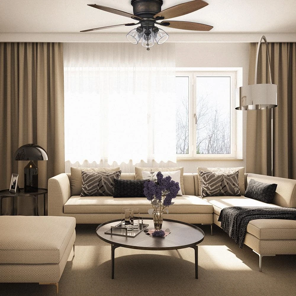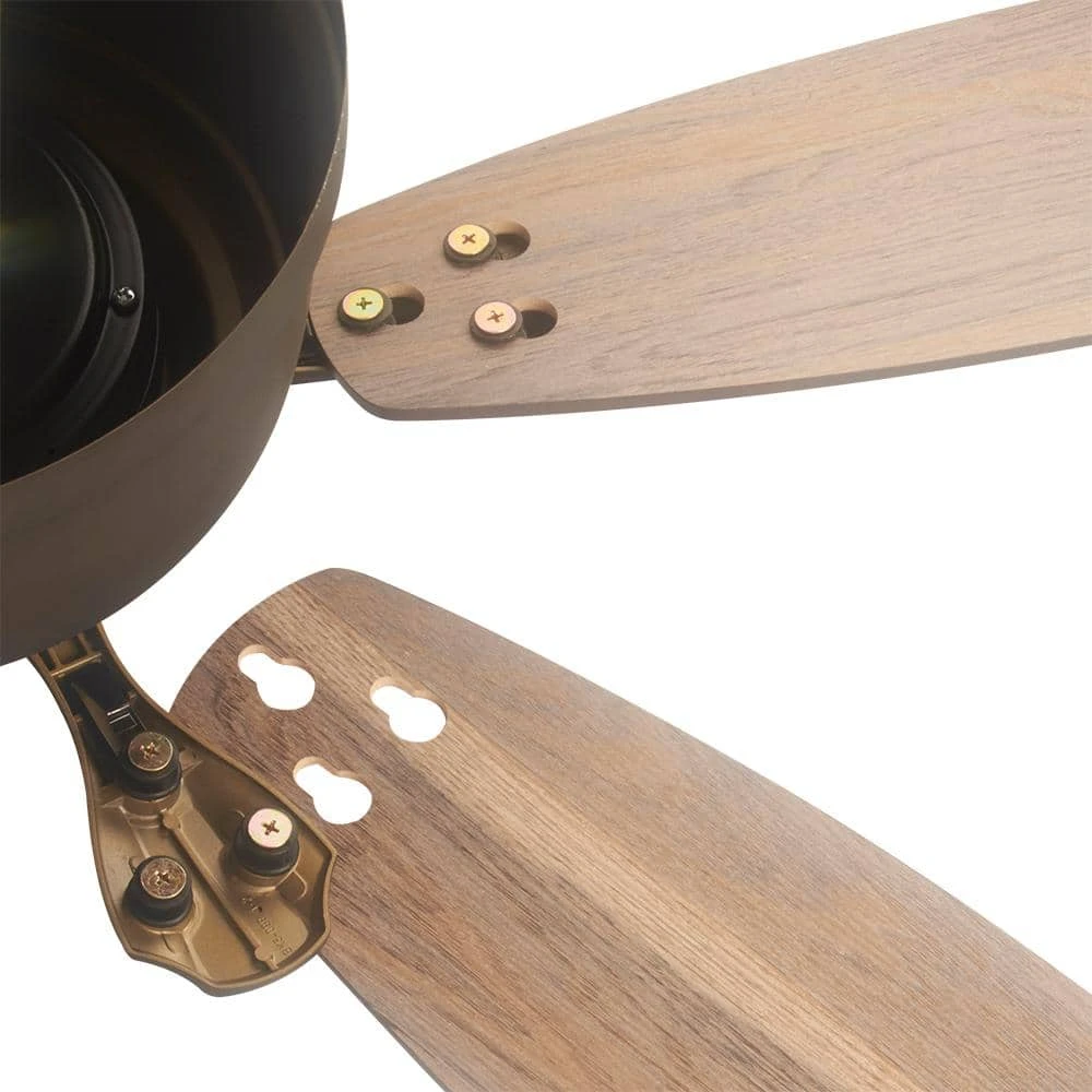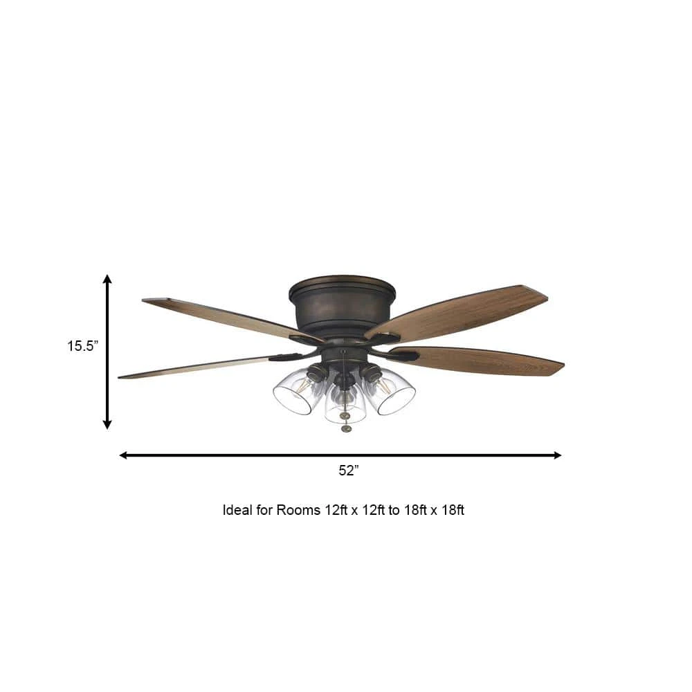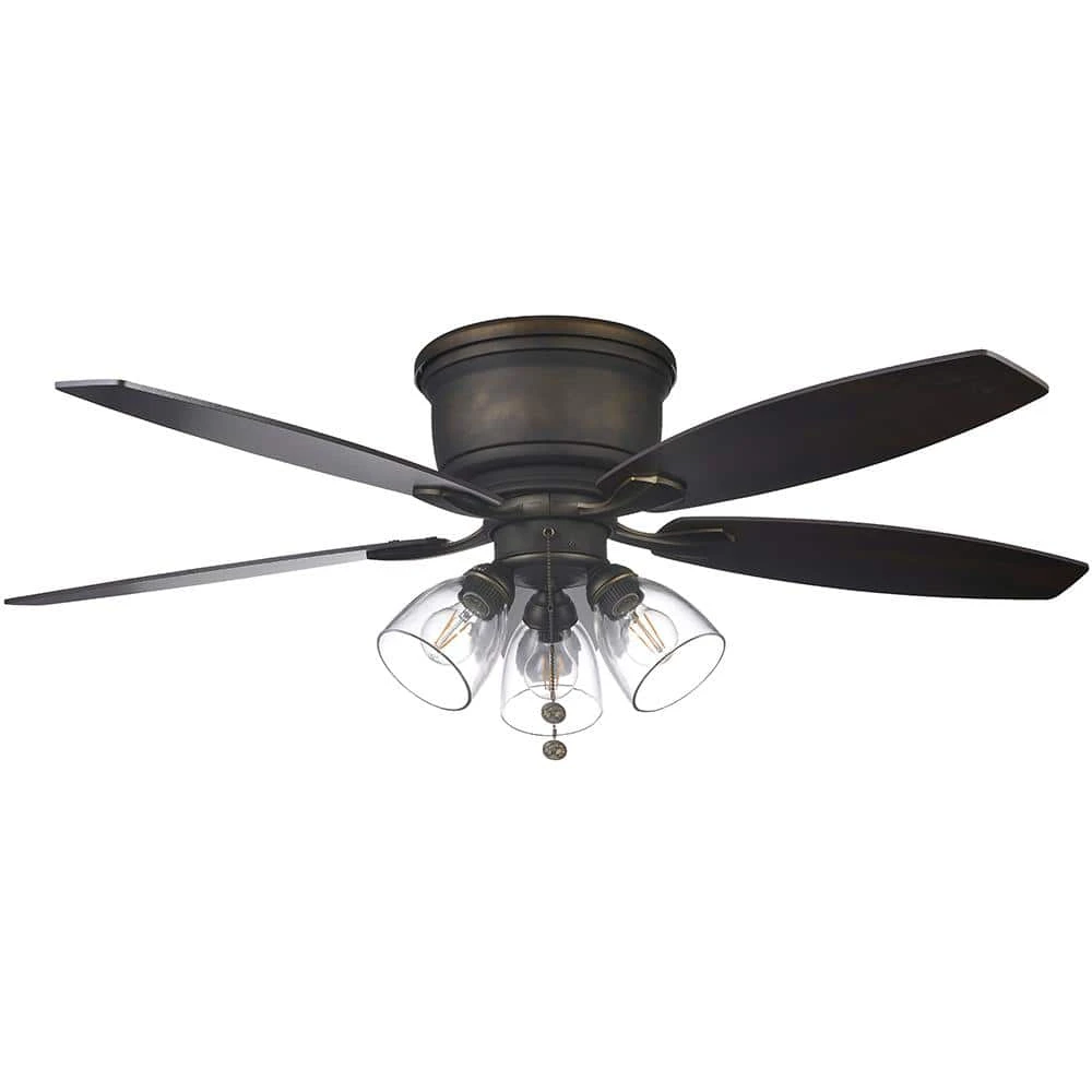 The Hampton Bay Stoneridge ceiling fan offers traditional styling and impressive, quiet performance. This fan includes three 6.5-Watt LED bulbs and clear glass shades for maximum light output. Installation is a breeze with QuickFit features like a slide-on mounting bracket and QuickInstall blades. The bronze housing is complemented with five reversible blades in reclaimed walnut and Wenge finish to coordinate with many of today’s indoor decor trends.