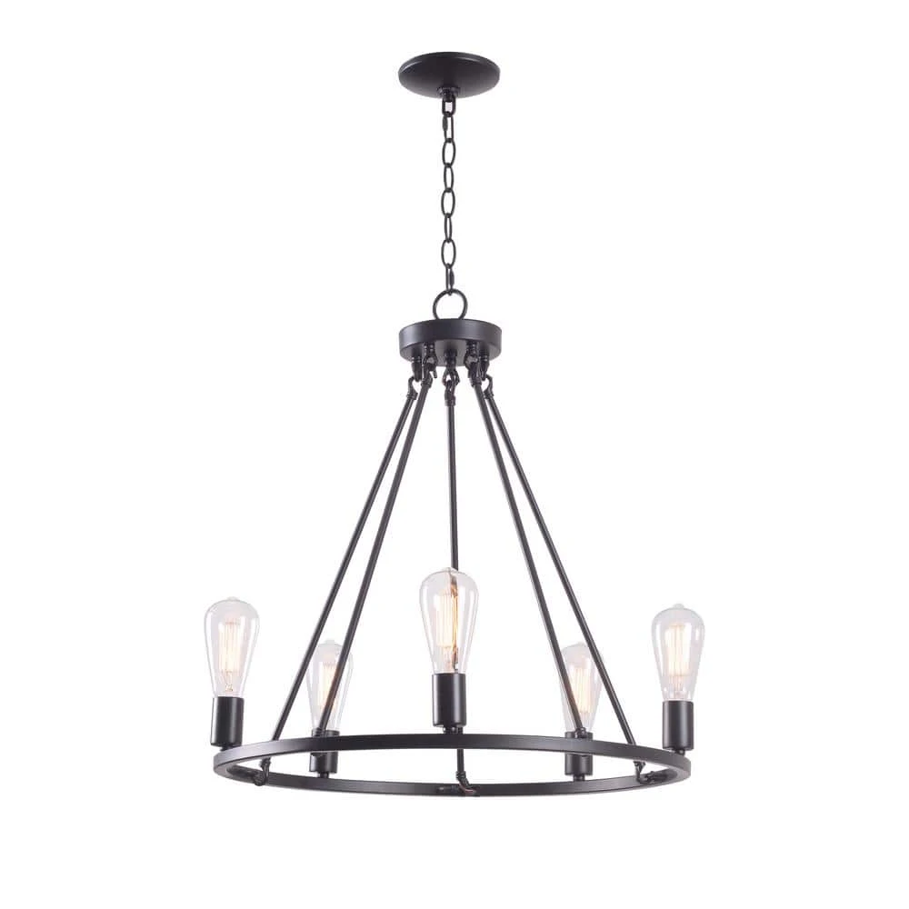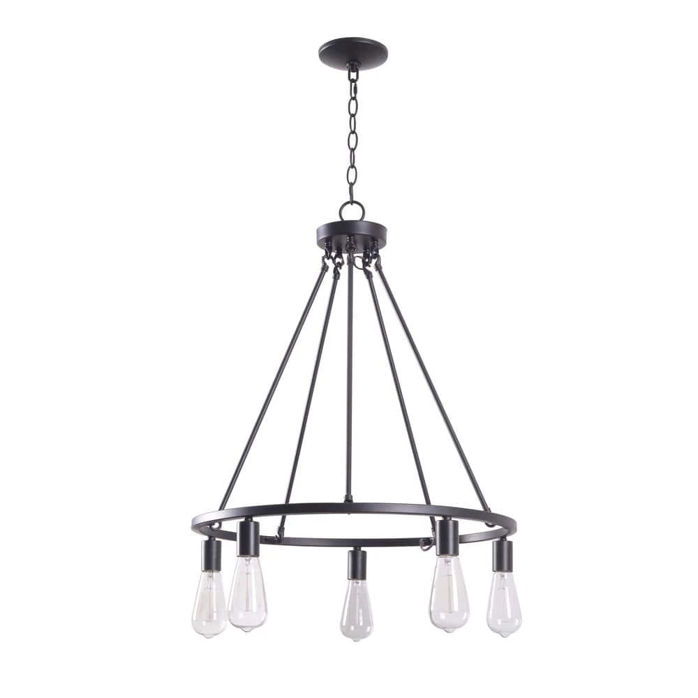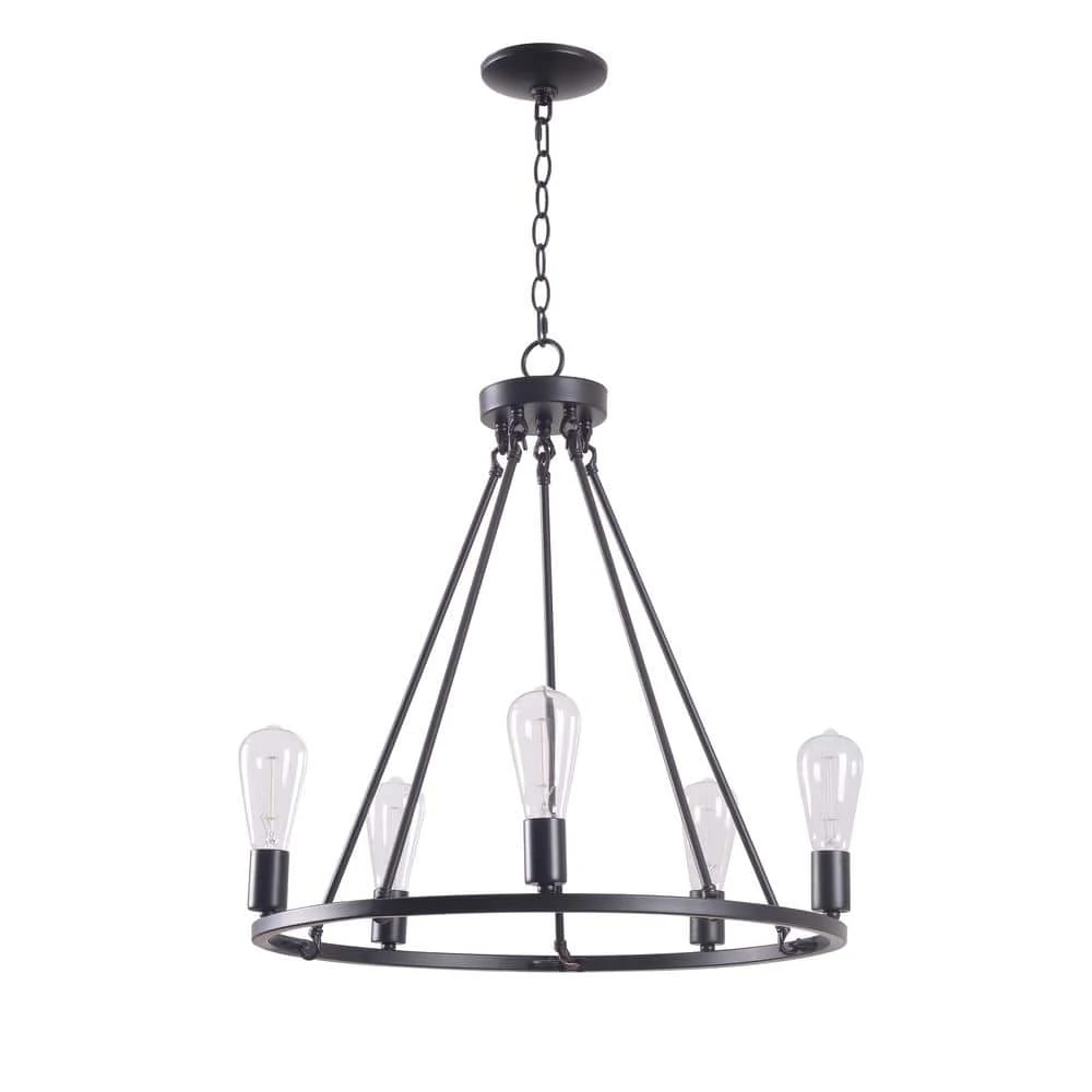 - Urban industrial wagon-wheel style 5 light chandelier