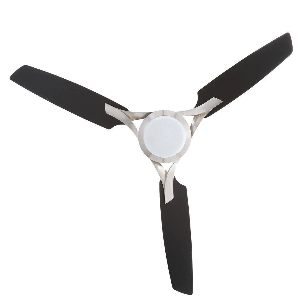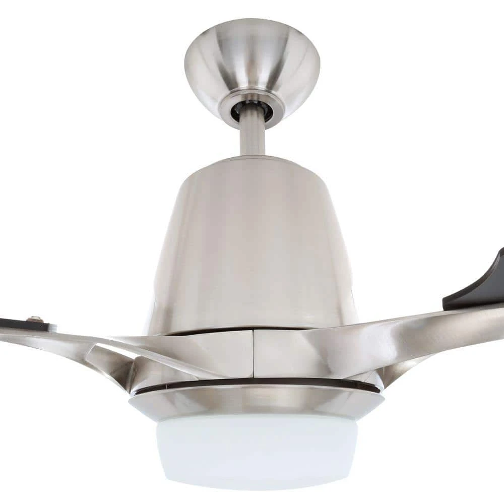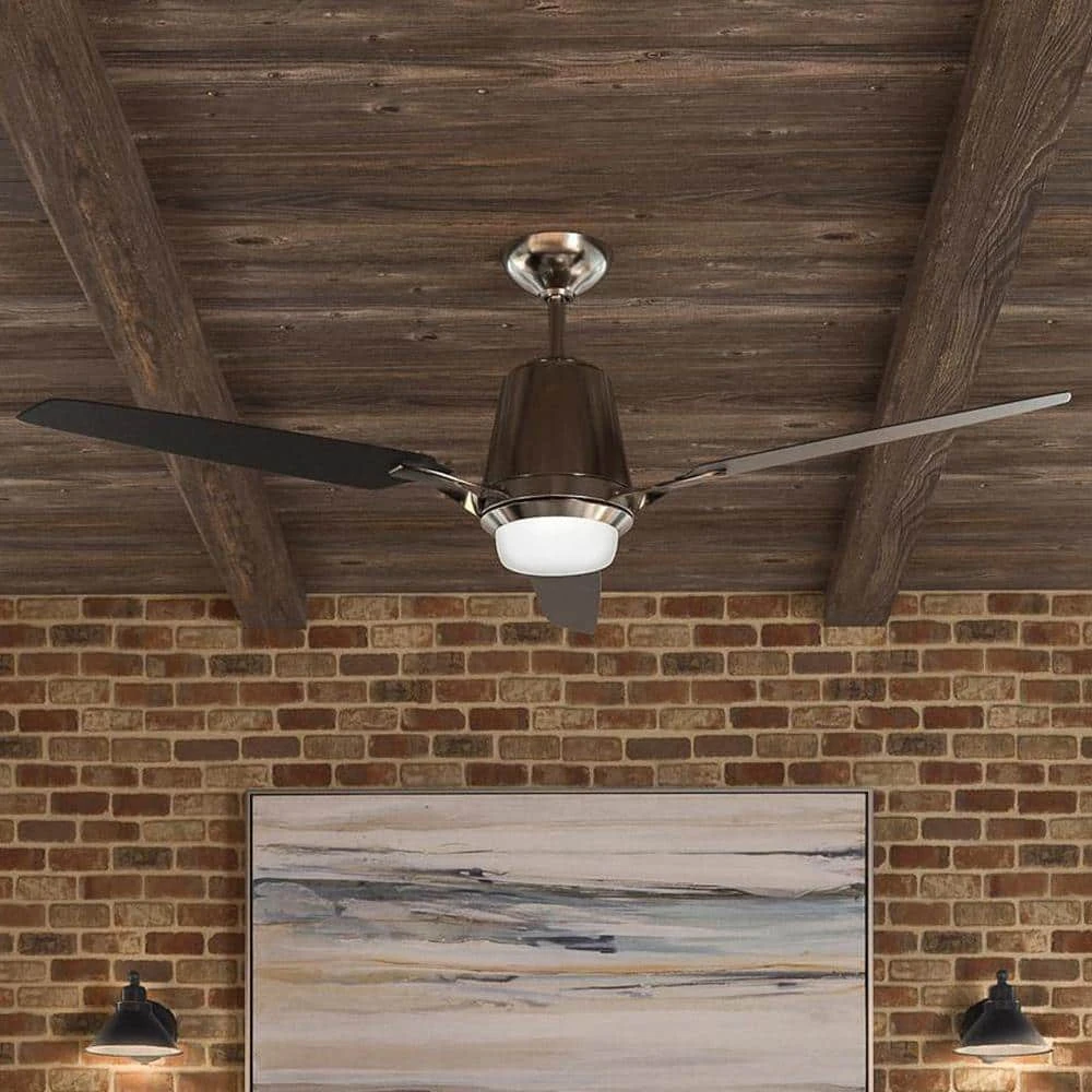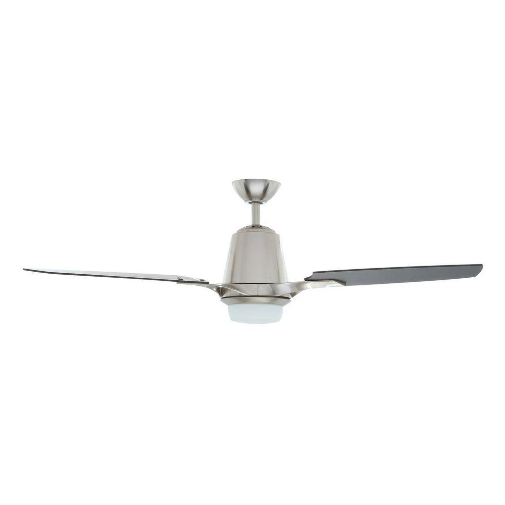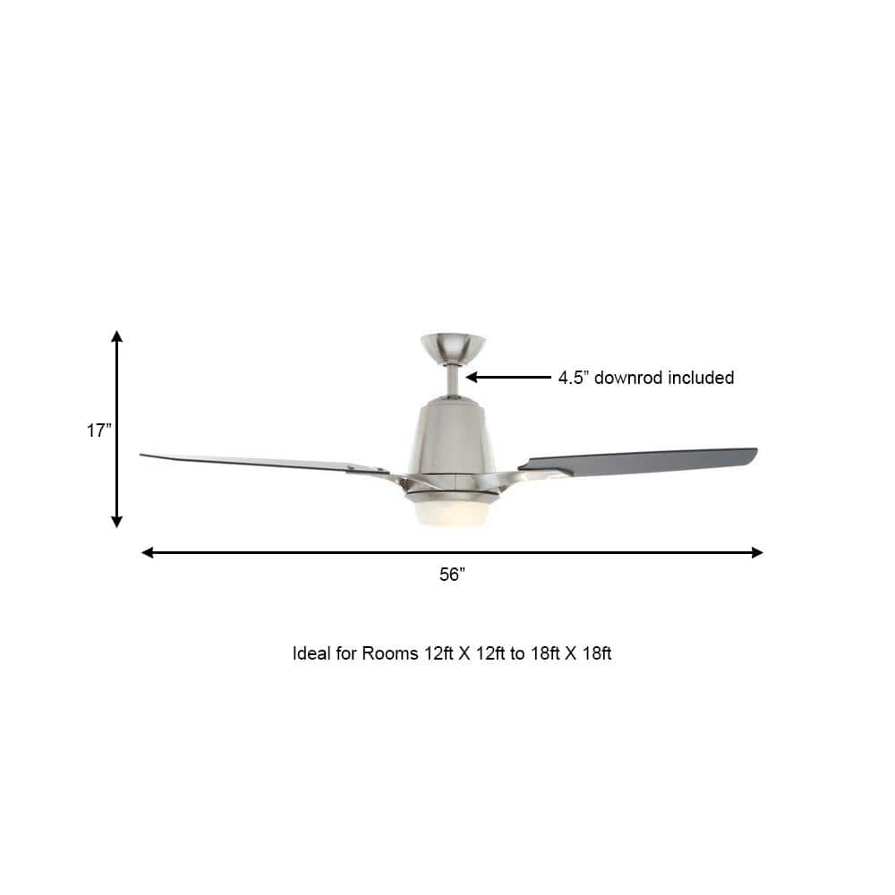 The Hampton Bay Stylique II 56 in. Ceiling fan has a 3-bladed design that is extremely modern in design. The unique blade arms will certainly draw attention to this fan. The dome style light kit has frosted glass and includes (1) 100-Watt halogen light bulb. The Large 172 mm x 17 mm motor offers superior air movement and has a lifetime motor warranty.