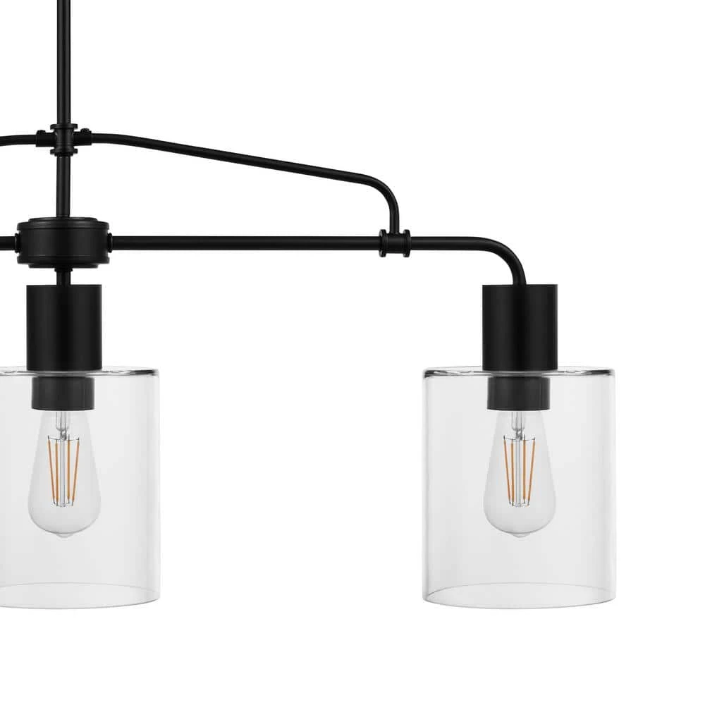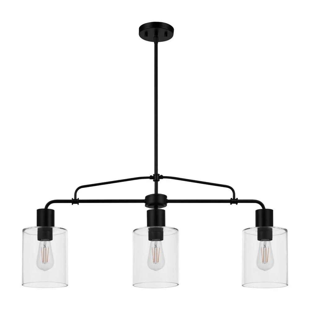 With a warm matte black finish, the Sutton Place Collection brings a refined modern farmhouse look to your home. The chic hanging bar accent contrasts the round canopy and oval sockets to create stunning visual appeal. Clear glass shades showcase the bulb of your choice and provide a perfect finish to a gorgeous 3-light linear chandelier.