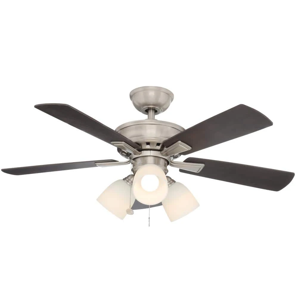The 44 in. Vaurgas ceiling fan by Hampton Bay offers traditional elegance with modern design touches and technological advancements. This indoor ceiling fan includes QuickFit installation features like a slide-on mounting bracket and QuickInstall blades to make installation a breeze. This fan also includes 5-reversible blades to compliment many indoor decor trends. The 3-light light kit includes LED bulbs for increased energy efficiency.