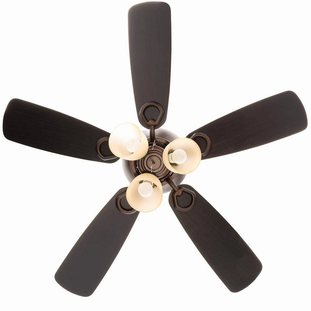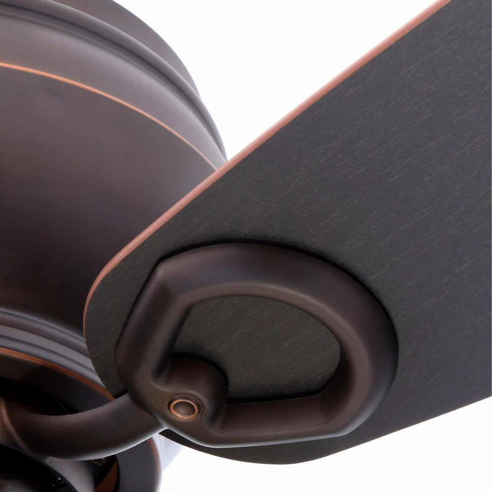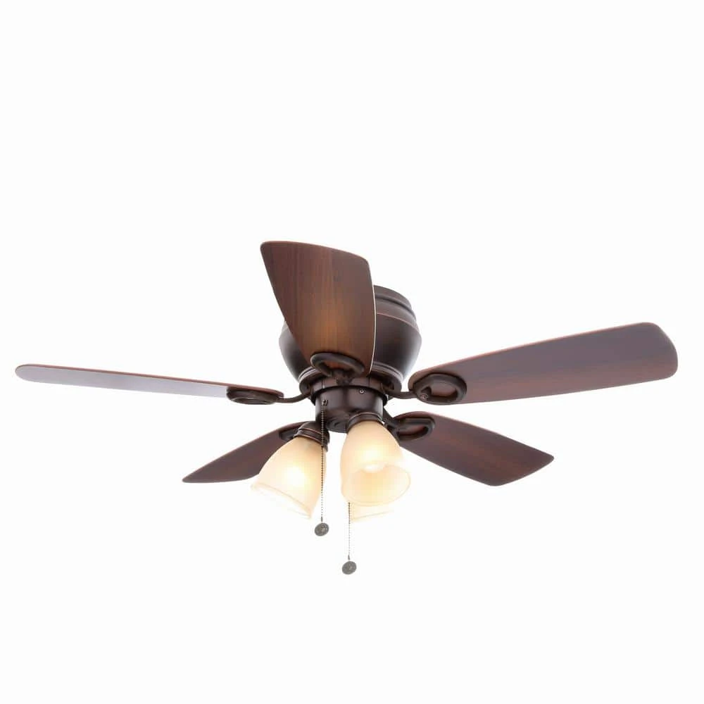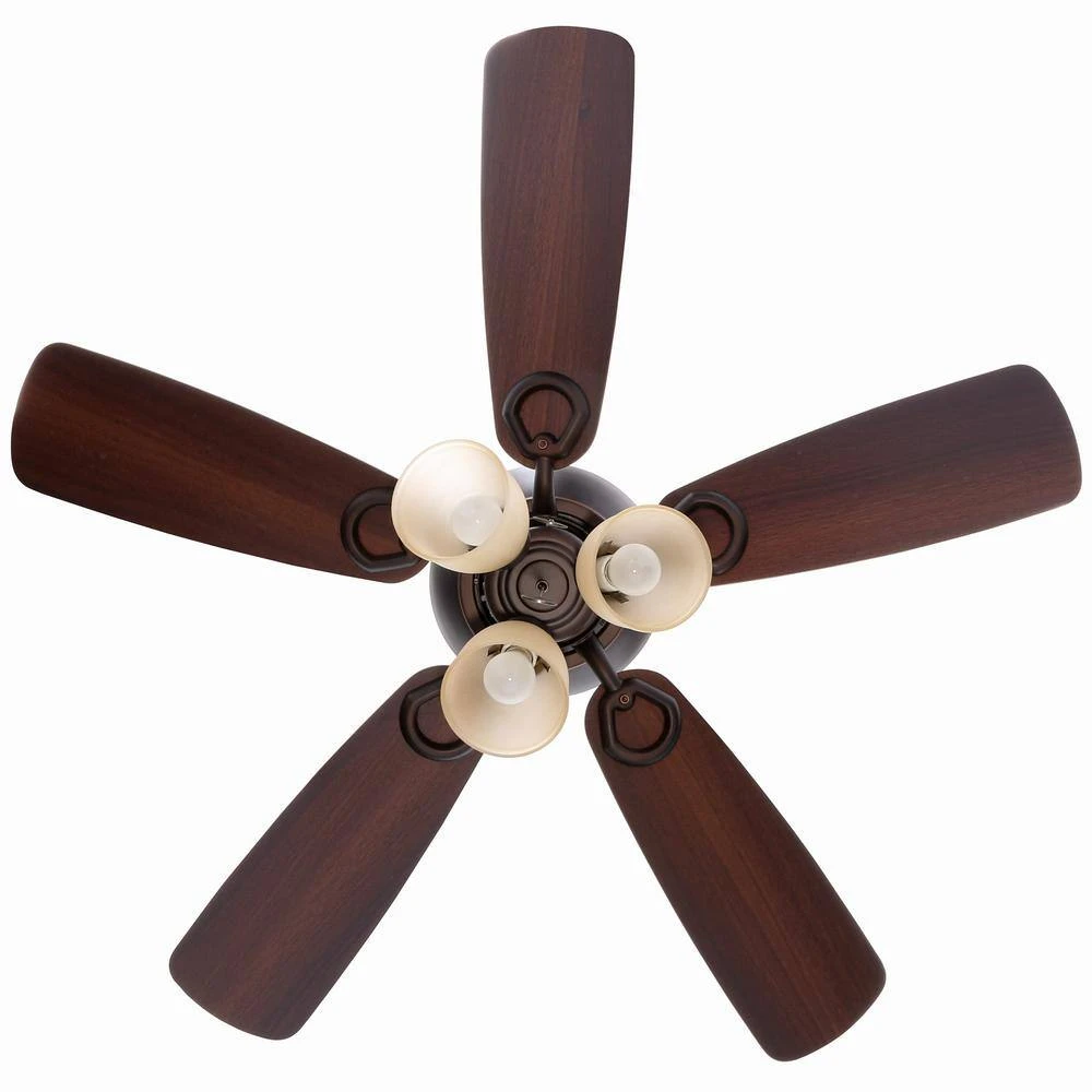 Recapture the beauty of times gone by with the rich finishes and high detail of the Hampton Bay Whitlock Mediterranean Bronze Ceiling Fan. This fan features a 3-light kit with sandstone glass shades and five reversible blades in dark cherry and English oak finish for a versatile look that complements a wide variety of room decor. Uses three 9.5-Watt LED bulbs (not included).