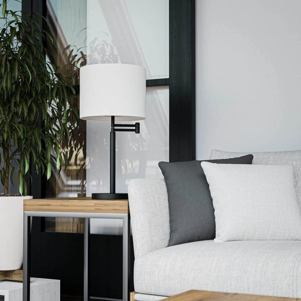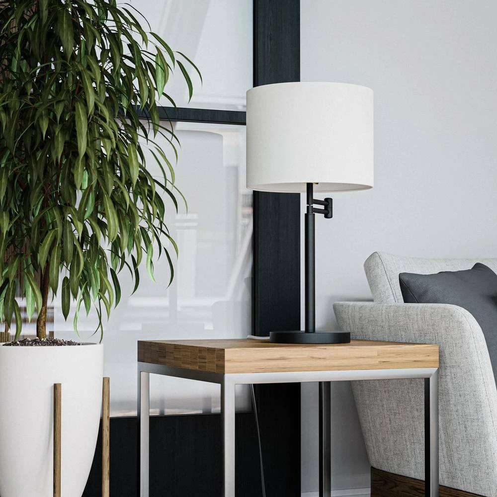 This simple lamp is far from basic with its adjustable swing arm, USB charge port and classic style. Matte black base contrasts with the white drum shade to create a versatile look that will match nearly any style of decor, from traditional to eclectic boho. This swing arm lamp allows you to place the lighting element where you need it – ideal for both use as a reading light and a task light.
