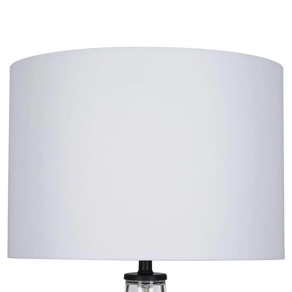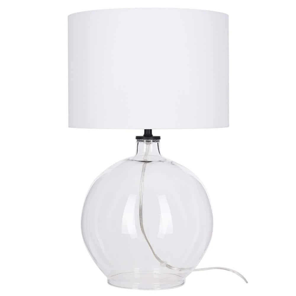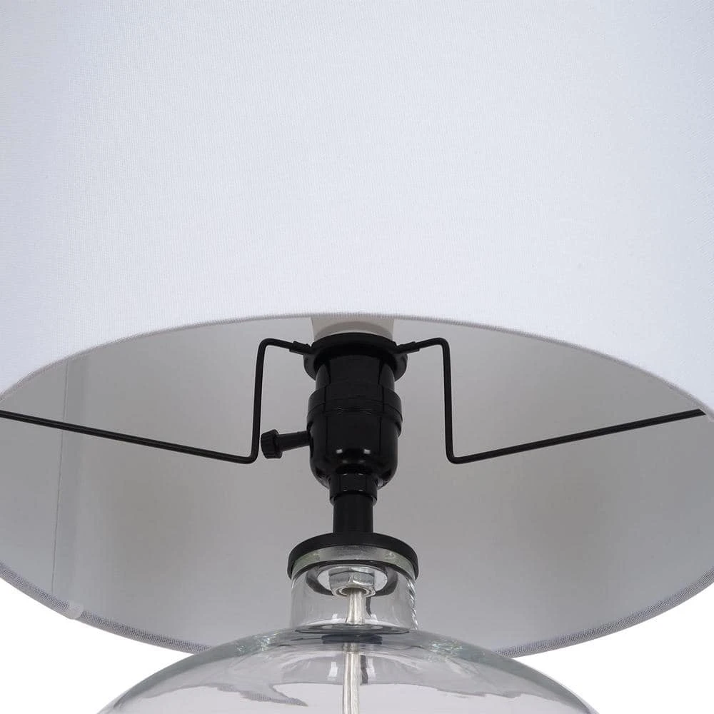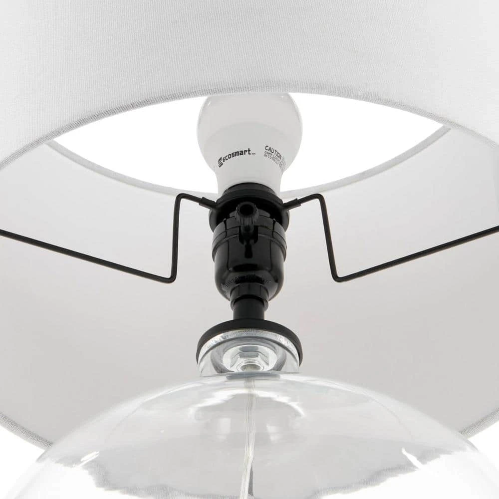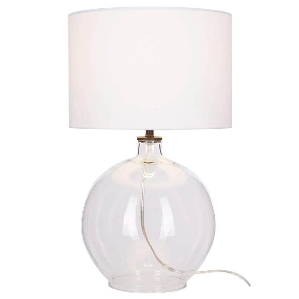 Designed to compliment a variety of home decor styles from coastal to contemporary, the Hampton Bay 21.5″ Windmere Round Glass Table Lamp is a stunning addition to any home. The lamp’s chic clear glass body is accented with modern black metal hardware and a classic white drum shade. Uses one standard A19 E26 light bulb, max 16-watt LED or 100-watt incandescent (light bulb not included). A clear 60″ power cord completes the lamp’s airy look.